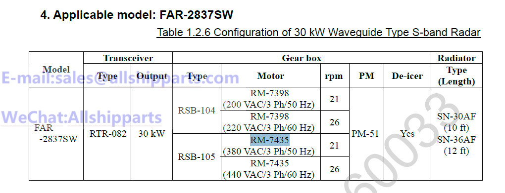 RM7435 (RSB-099 / RTR-080) OF S-BAND RADAR FURUNO FAR-2837SW